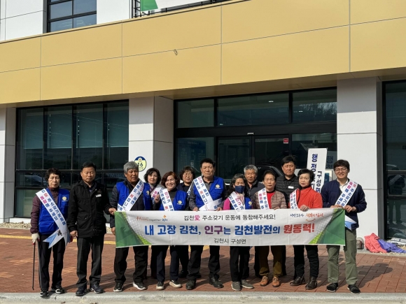 | 김천시 구성면(면장 이혜정)에서는 3월 14일 바르게살기운동 김천시 구성면 위원회(위원장 임상규)와 함께 인구 증가 캠페인을 벌였다.