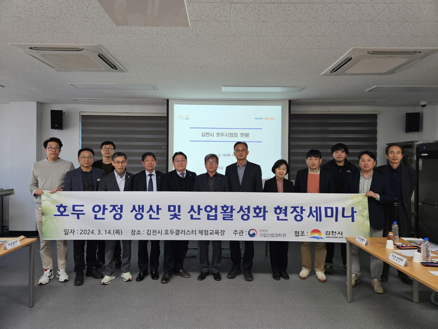 | 김천시는 3월 14일 대항면 향천리 호두 시험림에서 국립산림과학원, 김천시와 천안시 관계자가 참석한 가운데 호두 산업 활성화 세미나를 개최했다.