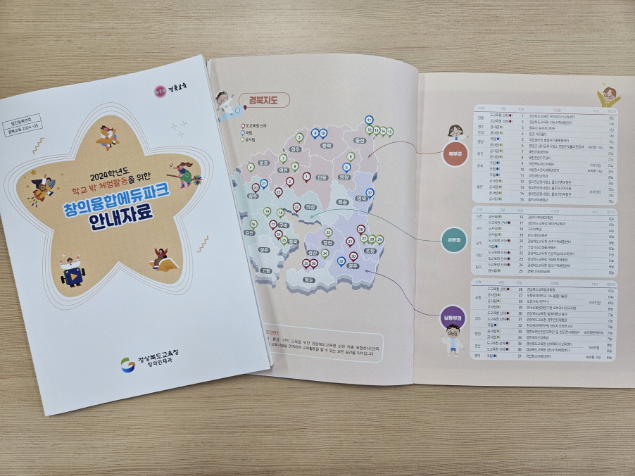 경북교육청은 창의융합에듀파크 조성을 위해 소속 기관뿐만 아니라 도내 과학‧수학‧정보‧AI‧환경 분야 관계기관들과 체험활동 지원 프로그램의 개발과 운영을 협의하고, 교육과정과 연계된 학교 밖 체험활동을 지원하기 위해 37개 기관에 대한 안내자료집을 제작해 학교에 제공했다.