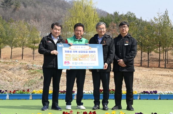 | 김천시(시장 김충섭)는 지난 3월 27일 율곡동 안산공원에서 개최된 제79회 식목일 기념 나무 심기 행사에서 김천시청 봉사동아리인 우함나회(회장 이삼근)로부터 저출생 극복 성금 1,000만 원을 전달받았다고 밝혔다.