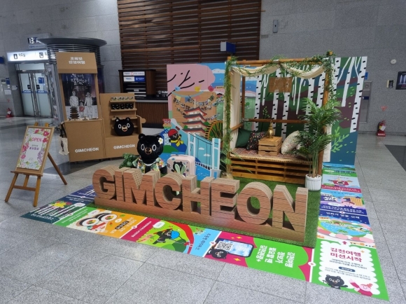 | 김천시는 4월 22일까지 김천(구미)역 1층 맞이방에 포토존을 갖춘 김천 관광 팝업 홍보관을 설치하여 김천 관광 소비자와의 접점을 확대했다. 김천 관광 홍보관은 시에서 최초로 시행하는 팝업 형식의 이동형 홍보관으로 기존의 정형화된 홍보부스와는 차별화된 체험형식의 부스로 운영한다.