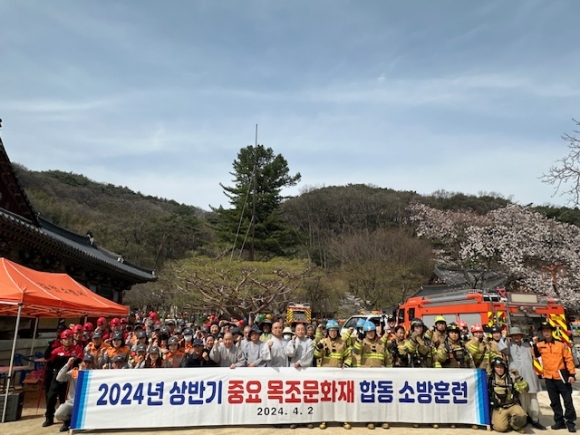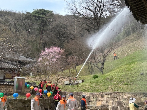 김천소방서, 직지사 목조문화재 산불 대응 합동소방훈련 실시