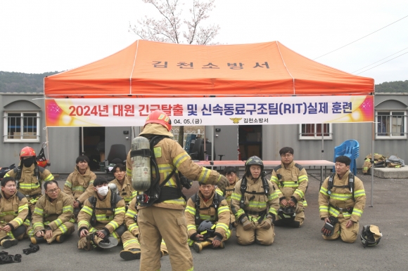| 김천소방서(서장 안영호)는 4월 5일 김천소방서 다목적훈련탑에서, 현장활동을 하는 소방대원의 예기치 못한 고립 상황을 대비해 대원 긴급탈출 실제훈련을 실시했다고 밝혔다.