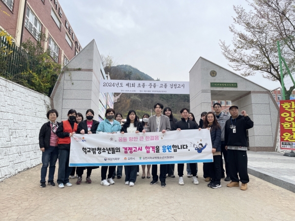 | 김천시는 김천시학교밖청소년지원센터 꿈드림(이하 꿈드림)에서 지난 4월 6일 시행된 2024년 제1회 검정고시 시험을 지원하기 위해 고사장(구미여자상업고등학교)에 방문해 학교 밖 청소년의 검정고시 응시를 지원했다고 밝혔다.