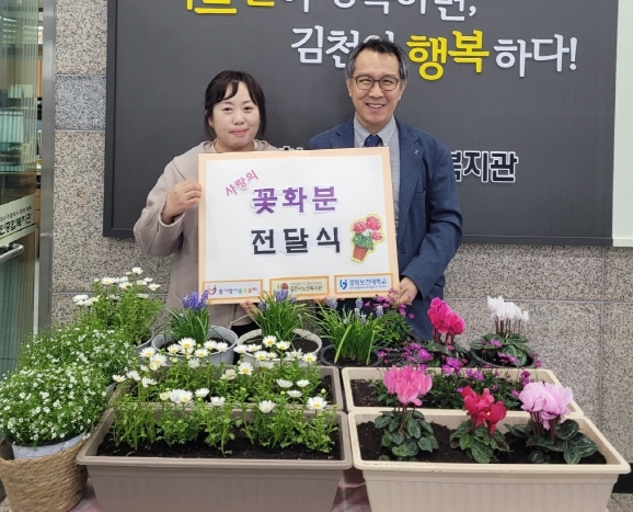 김천시 다함께돌봄센터 꿈자람마을돌봄터, 노인복지관에 꽃화분 전달
