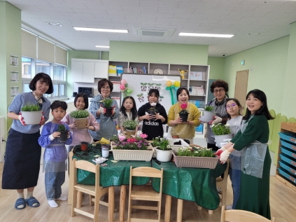 | 지난 4월 5일 식목일을 맞아 방과 후 돌봄 프로그램을 이용 중인 초등학생 20명의 아이들이 꽃 심기 활동을 진행하였으며, 이번 활동은 김천시노인건강문화센터를 이용하시는 어르신이 직접 아이들에게 꽃 심는 방법을 전해주고, 함께 한 활동이라 1세대(노년층)와 3세대(아동) 간 소통 및 공감을 통한 세대 간의 이해증진을 할 수 좋은 기회가 되었다.