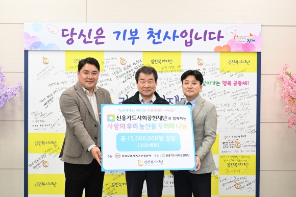 | 김천복지재단(이사장 김충섭)은 지난 4월 12일 (사)우리농업지키기운동본부로부터 농산물꾸러미 300박스(1,500만원 상당)를 전달받았다고 밝혔다.