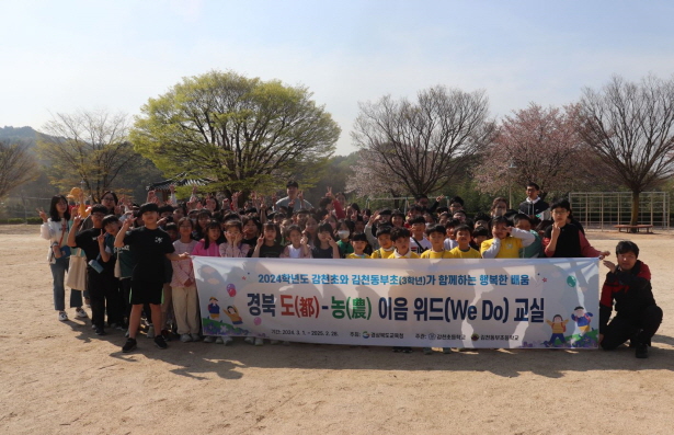 |  | | | ⓒ 김천내일신문 | | 감천초등학교(교장김명규)는 2024학년도 1년간 김천동부초 3학년 학생과 함께하는 행복한 배움을 위해 「도(都)-농(農) 이음 위드(We Do)교실 운영으로 행복 키우기」 주제를 가지고 두 학교가 협력하여 운영하고 있다.
