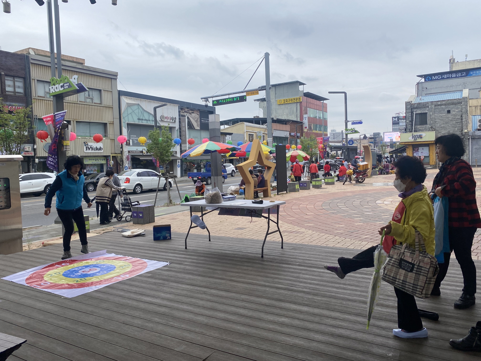 처음으로 4월 15일 평화시장 만남의 광장에서 고무신 던지기를 하였다. 시장을 찾은 시민들께서 둥그렇게 모여들어 가운데를 향하여 너, 나없이 참여하여 포인터에 다다르면 함성을 지르고 기뻐하는 모습이 마치 동심의 세계로 돌아가 나이를 잊은 듯하였다. 포인터에 안착한 분들께는 손으로 직접 만든 수세미를 증정하여 행복함을 두 배로 가지게 하여 훈훈한 분위기가 연출되기도 하였다.