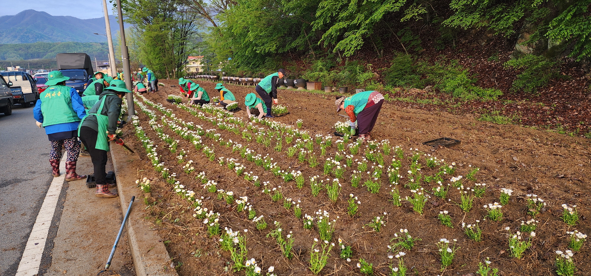 이번 작업에서 회원들은 복전리 백운천 주변 부지에 마가렛 3,500그루와 백일홍을 심었으며 장미 화분 40여 개를 두었다. 대항면 복전리는 추풍령을 지나 대항면으로 들어오는 초입에 있어 대항면을 찾는 많은 방문객을 처음으로 맞이하는 곳이다.