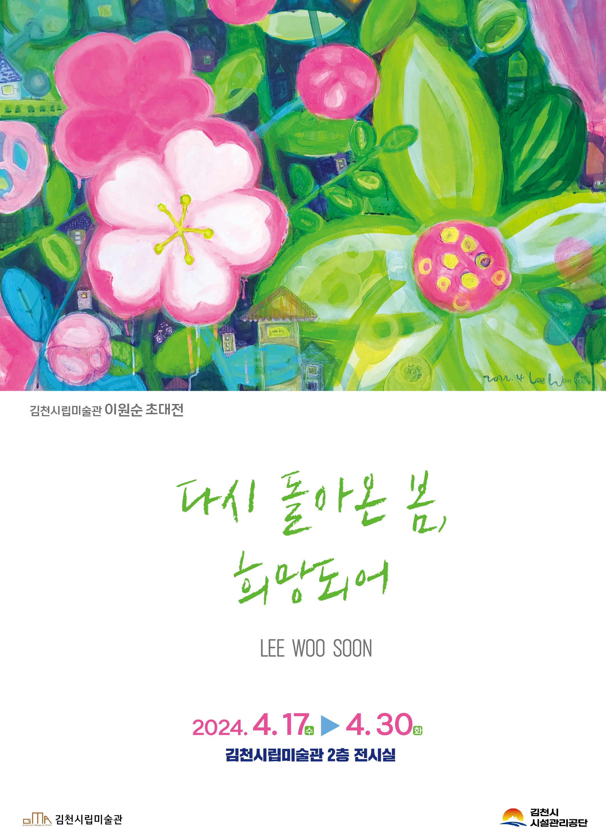 | 김천시시설관리공단에서 운영하는 김천시립미술관에서 2024년 지역 작가 초대전 ‘다시 돌아온 봄, 희망되어’ 이원순 작가 전시를 4월 17일부터 30일까지 선보인다.