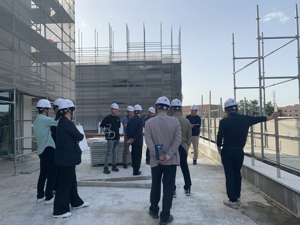 공공건축 품질검수 합동점검반은 건축디자인과에서 주관하여 건축시공, 건축구조, 안전분야에 대하여 건축사 등 외부전문가와 건축디자인과장 외 시설직공무원으로 구성하여 공사 현장을 방문해 주요공정과 안전 및 시공 자재 하자여부에 대하여 품질검수를 실시하였고, 이날 가벼운 문제점은 현장 시정 조치토록 하고 누수위험 등의 중대 위험요소에 대해서는 보강 조치를 지적하였다.