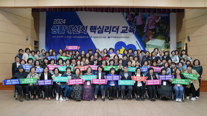 |  | | | ⓒ 김천내일신문 | | 경상북도농업기술원은 지난 4월18일과 19일 청송임업연수원에서 도내 22개 시군 생활개선회 회장과 임원 75명을 대상으로 생활개선회 핵심리더 교육을 실시했다.