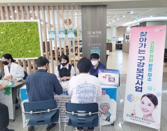 | 김천시는 지난 4월 18일 혁신도시 입주 공공기관인 TS한국교통안전공단에서 구강, 한방, 만성질환 관리, 금연클리닉으로 이루어진 직장인 맞춤형 찾아가는 통합건강서비스를 운영했다.