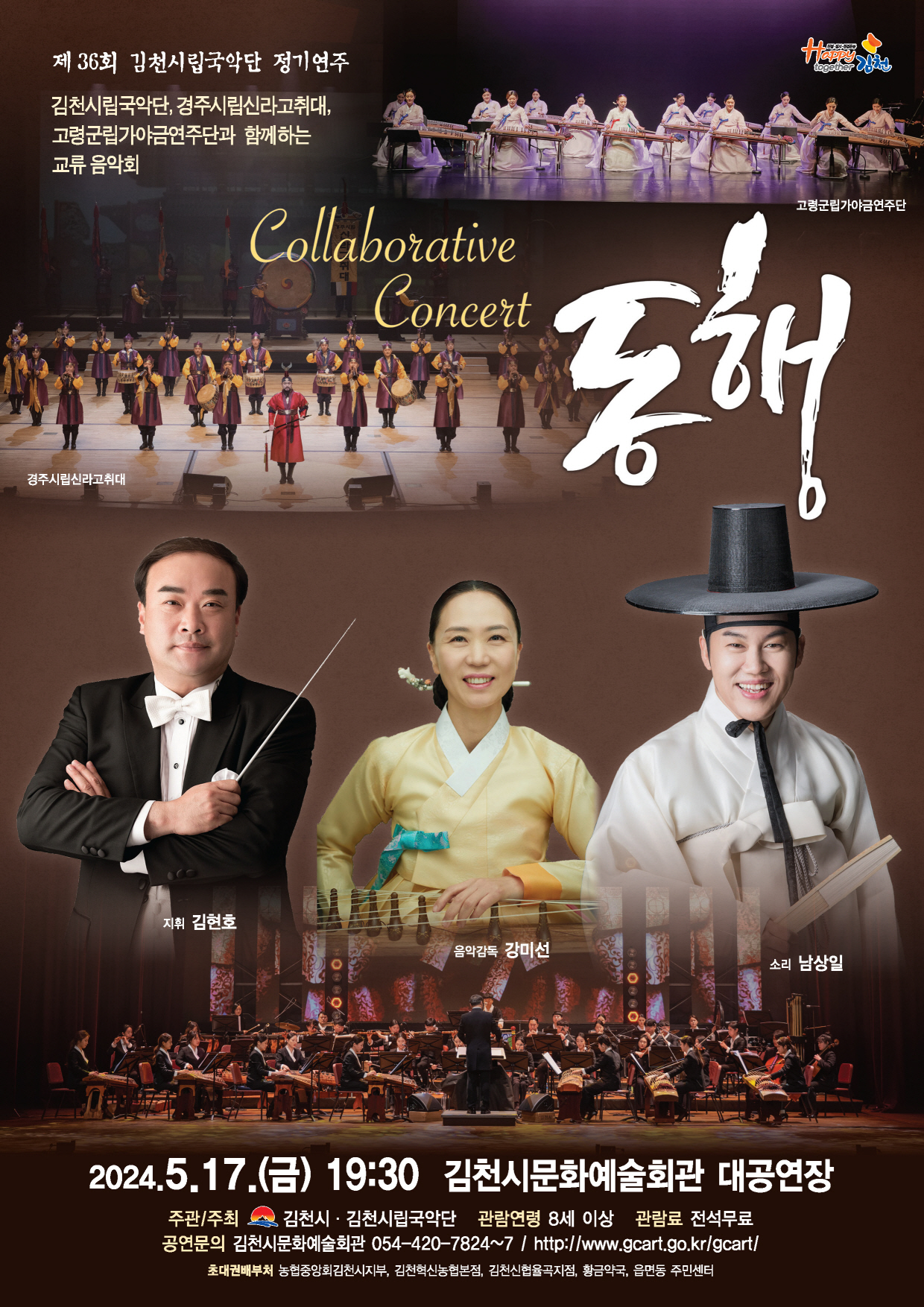 | 김천시문화예술회관에서는 5월 17일에 제36회 시립국악단 정기연주회 『동행』을 개최한다.