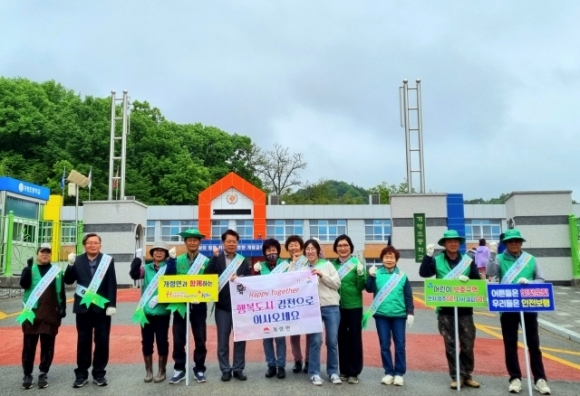 | 개령면 새마을협의회(회장 나채효, 부녀회장 방규림)는 지난 4월 24일 오전 개령초등학교 정문에서 학부모들과 아이들을 대상으로 Happy together 교통안전 캠페인 및 인구 회복 캠페인을 진행했다.