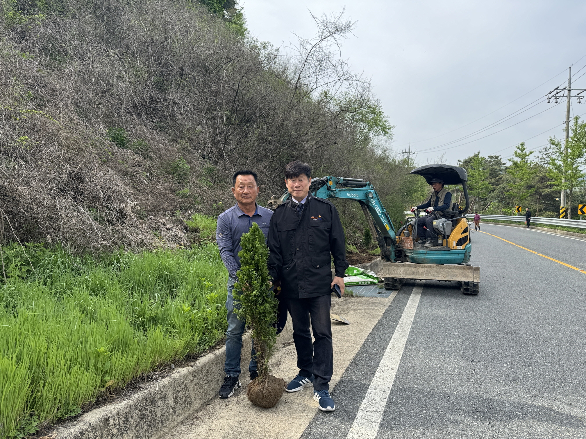 | 광주광역시에서 조경업을 운영 중인 박노상 씨는 고향을 떠난 지 어언 42년이 지났지만, 고향을 생각하는 마음은 누구보다도 컸다. 평소에도 고향에 도움이 될만한 일이 없을까 항상 고민하던 박노상 씨는 “부모님 산소에 성묘를 갈 때마다 허전했던 도로변의 풍경에 못내 아쉬워하다가 고향을 사랑하는 마음과 부모님을 그리워하는 효심에 조경수를 심고자 마음먹었다.”라고 전했다.