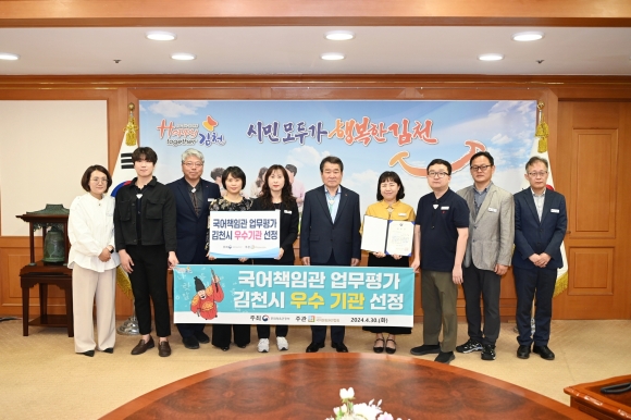 문화체육관광부는 매년 국어기본법 시행령에 따라 국어책임관의 전년도 업무 실적을 검토해 매년 우수기관을 선정한다. 김천시는 정부에게 쉽고 바른 공공언어 쓰기에 앞장선 노력을 인정받아 전국 226개 기초지자체 중 우수기관으로 선정됐다.