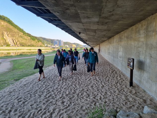 이는 전국적으로 맨발 걷기 열풍이 불고 있는 가운데 감천 백사장 모래를 활용해 하천변에 시민들이 쉽고 편하게 이용할 수 있도록 맨발 걷기 길을 조성한 사업이다.