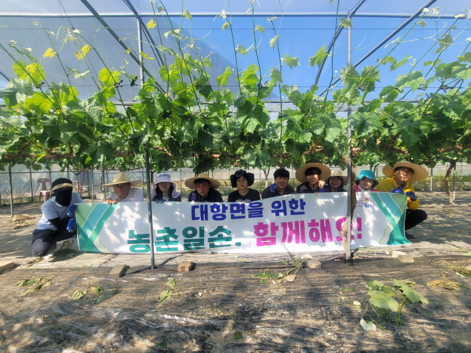이날 일손 돕기는 대항면 행정복지센터 소속 직원 10여 명이 참여했으며, 샤인머스캣 농가에서 포도순 따기 작업을 통해 농가 일손에 힘을 보탰다.