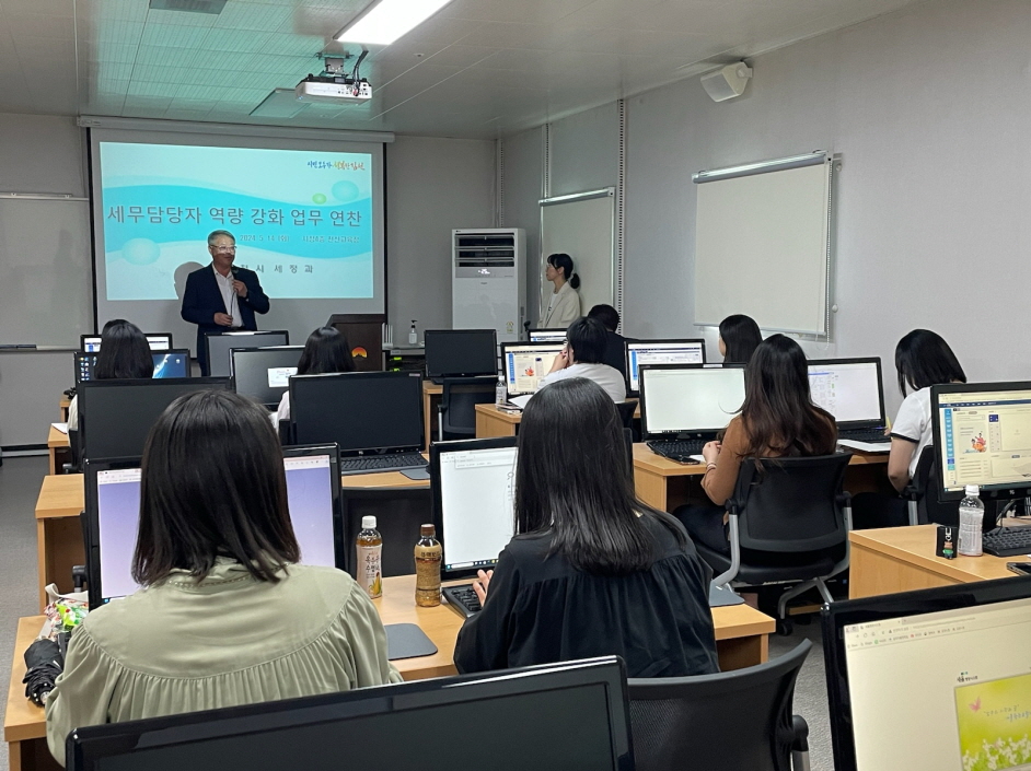 | 김천시에서는 지난 5월 14일 시청 정보화 교육장에서 세무 담당자 역량 강화 업무 연찬했다.