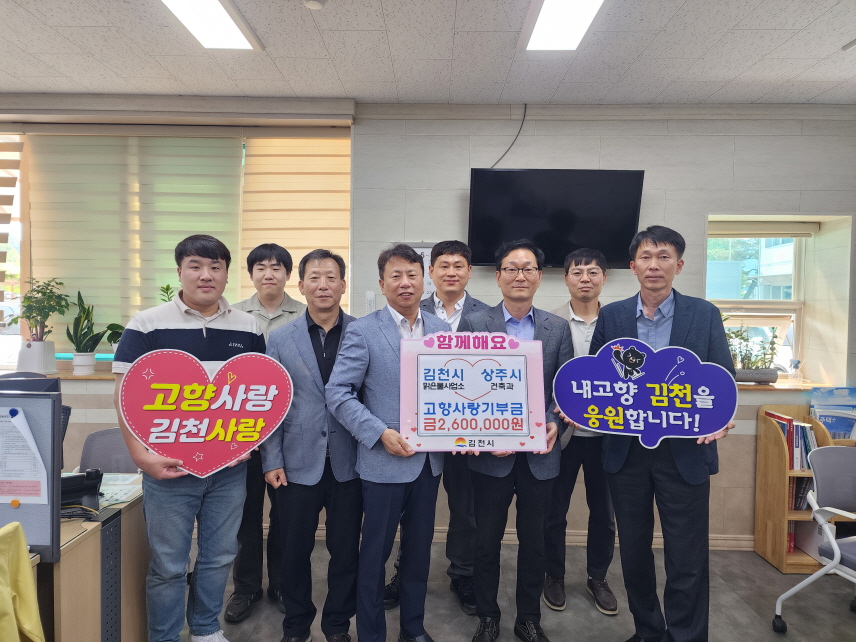 김천시 맑은물사업소와 상주시 건축과 직원 26명이 총 260만 원을 기부했으며, 현안 사업을 공유하며 두 도시의 고향사랑기부제 활성화를 응원하는 시간을 가졌다.