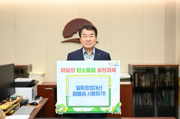 이번 5월의 실천 과제는‘일회용 컵 대신 텀블러 사용하기 (1회용품 줄이기)’로 김충섭 김천시장이 챌린지에 선도적으로 참여해 탄소중립 생활 실천에 적극 동참할 것을 당부했다.