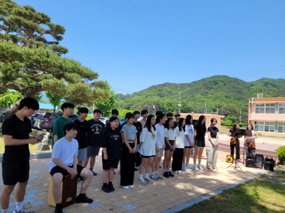 | 감문중학교(교장 곽재선)는 5월 14일 제43회 스승의 날을 맞아 학생자치회 주최로 ‘감사한 Day콘서트’를 열었다. 전교생이 직접 준비한 콘서트에서는 선생님께 드리는 롤링페이퍼 선물과 동아리 댄스 공연을 하였고, 합창으로 준비한‘스승의 은혜’,‘수고했어 오늘도’ 노래 공연으로 학생들을 위해 항상 애쓰시는 선생님들께 감사함을 표현하였다.