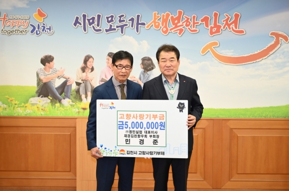 재경김천향우회 문연시, 민경준 부회장 고향사랑기부금 1,000만 원 전달