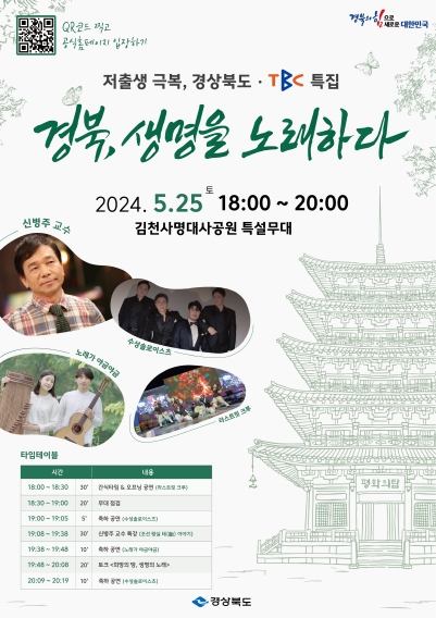 콘서트 제목은‘경북, 생명을 노래하다’이며, 건국대학교 신병주 교수가‘조선 왕실의 태(胎) 이야기’를 주제로 특강 하며, 특강 후 이철우 도지사가 신 교수와 함께‘희망의 땅, 생명의 노래’라는 주제로 저출생 극복을 위한 토크쇼를 진행한다.