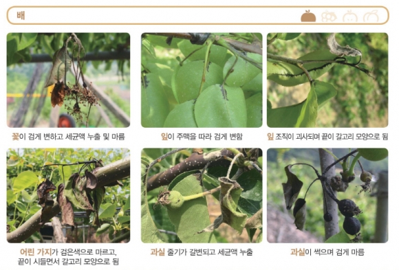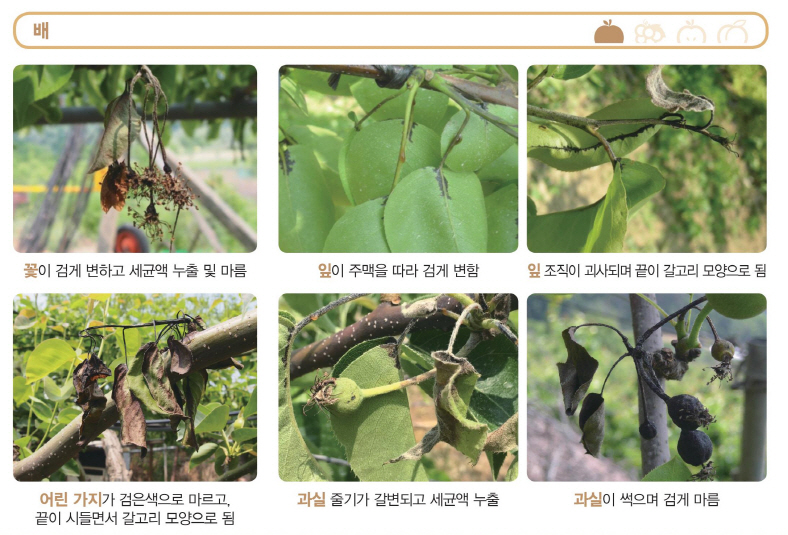 화상병은 사과나 배에 주로 감염되는 세균병으로 잎이나 가지가 불에 타는 듯한 증상을 나타낸다. 또한 국가관리 검역 병해충으로 첫 발생 시 폐원해야 한다.
