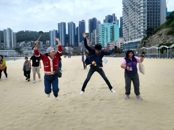 첫 번째 나들이로 4월 23일 발달장애인 30명과 자원봉사자 10명이 함께 부산 송도로 향했다. 발달장애인과 봉사자들은 송도해수욕장을 산책하며 팀별미션인 인증샷을 찍었다. 그리고 86m 높이에 달하는 케이블카에 탑승하여 유리바닥 아래로 짜릿하게 펼쳐지는 바다의 풍경을 구경하였다. 이후 암남공원에 도착하여 시설을 이용한 후 여행이 마무리 되었다.