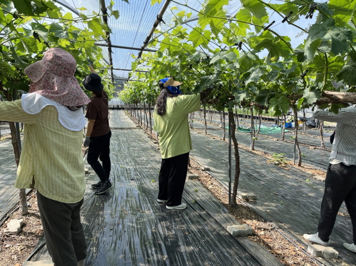 이날 사회복지과와 복지기획과 직원 15여 명은 바쁜 농번기에 노동력 부족으로 어려움을 겪고 있는 농가에 조금이라도 보탬이 되고자 이른 아침부터 농가를 방문하여 포도 순 정리, 덩굴손 제거 등 작업으로 구슬땀을 흘렸다. 농가주는 “더워지는 날씨에 작업이 힘들었을 텐데도 열심히 작업해 주셔서 감사드린다. 요즘 일손 구하기도 어려운 상황이었는데 바쁜 시기에 많은 도움이 됐다.”라며 고마운 마음을 전했다.