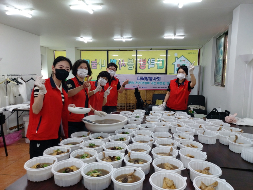 | (사)김천시종합자원봉사센터‘다락방 봉사회’(회장 김경태)은 오월부터 그들의 재능 나눔을 시작하였다. 다락방 봉사회은 회원들 각자가 가진 재능으로 봉사 활동을 펼치며 오랜 시간 동안 지역사회를 위해 봉사해 온 단체이다. 5월 16일, 17일 양일간에 걸쳐 6·25참전 용사 어르신들에게 삼계탕을 준비하여 음식을 대접하였다. 여름이 시작될 무렵에 어르신들의 건강을 위해서 건강 보양식을 준비한 다락방 봉사단들의 손길에는 사랑이 가득하였다. 동병상련의 아픔을 서로 위로하는 그들에게 따뜻한 음식은 말 그대로 보약이 되었으며 봉사단들의 따뜻한 위로의 말 한마디는 그 값을 배로 하였다.