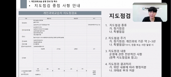 이번 연수는 ▲개인과외교습 운영 및 지도점검의 주요 지적 사항 안내 ▲관련법규 안내 ▲법위반 사례 ▲기타 유의사항 및 질의·응답 등 건전한 과외교습을 실현하기 위한 내용으로 진행되었다.
