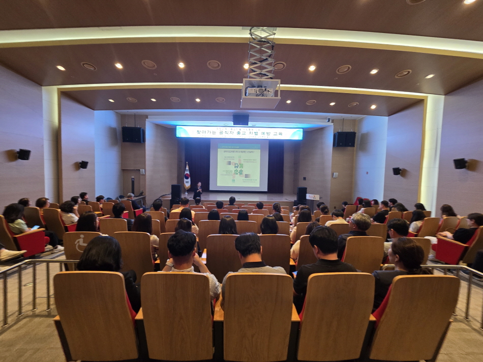 | 김천시는 지난 5월 28일, 김천시 공무원 100여 명을 대상으로 김천녹색미래과학관에서 “찾아가는 공직자 종교 차별 예방 교육”을 실시했다고 밝혔다.