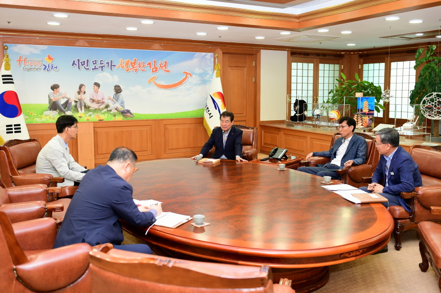 | 김천시는 지난 5월 29일, 김천시청 접견실에서 대구대학교 산학협력단 최철영 교수와 출입국·이민관리청(이하 이민청) 김천시 유치 타당성 연구의 원활한 추진을 위한 사전 논의의 시간을 가졌다.