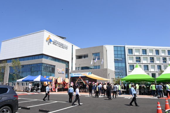 개관식은 김천시립국악단 ‘대북 퍼포먼스’ 축하 공연을 시작으로 경과보고와 내빈 축사, 테이프 커팅, 기념식수로 이어졌으며, 시설 관람에서 현대식 건축 양식과 쾌적한 내외부 환경에 관람객들의 호평을 받았다.