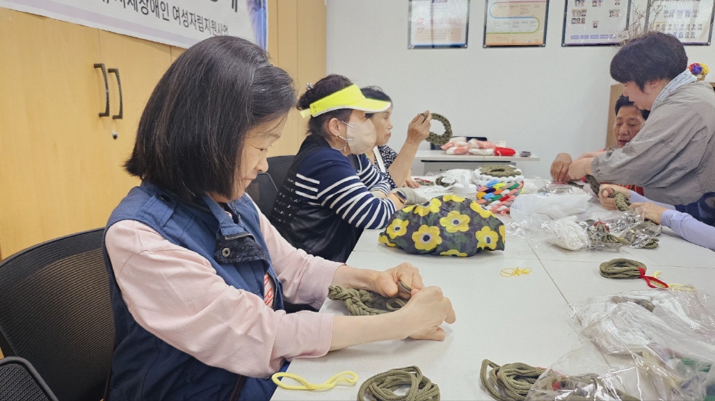 이번 교실은 3월부터 6월까지 매주 월요일 총10회기로 8명의 여성장애인들과 함께 ‘윤슬공방’ 신용숙 대표가 진행하였다. 휴지케이스, 손가방, 발매트, 바구니 등 다양한 작품을 만들어 봄으로써 개성을 표현하고, 생활에 필요한 소품을 만들어 보는 실용적인 교육으로 진행되어 큰 호응을 받았다.