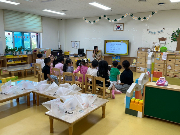 ‘함께 만들어가는 놀이중심교육과정을 통한 유아의 감성능력 신장’이라는 주제로 친구들과 함께 놀이를 만들어가고, 사계절 해(해야할 놀이-5세), 달(달콤한 놀이-4세), 별(별별 놀이-3세) 놀이를 통해 감성능력을 신장할 수 있는 방안을 모색하였다. 또한 교육과정 운영의 일반화를 도모하고자 주제에 따른 활동 내용 및 교사의 지원이 올바르게 방향성을 잡아가고 있는지에 대한 컨설팅을 실시하였다. 경상북도교육청연구원과 김천교육지원청, 3명의 전문가로 구성된 컨설턴트를 위촉하여 감성능력에 대한 관점, 문제해결을 위한 교수-학습에 대한 다양한 컨설팅을 받았으며 일반화를 위한 초석을 마련하였다.