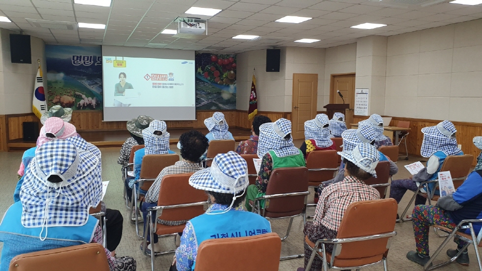 | 김천시 어모면(면장 김영호)은 지난 6월 5일 행정복지센터 2층 회의실에서 노인 일자리 참여자를 대상으로 여름철 폭염 대비 안전교육을 했다.