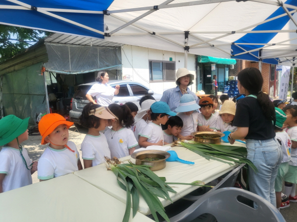 작년에 이어 관내 유치원생들이 행사에 함께 참여했는데, 올해는 금강사유치원에서 행사장을 찾아 단오의 전통을 몸소 체험했다. 어린이들은 미니줄다리기, 창포물 머리 감기, 장명루 팔찌 만들기 등을 통해 예로부터 내려오던 우리 민족 고유의 역사와 전통을 누리며 즐거운 시간을 보냈다.