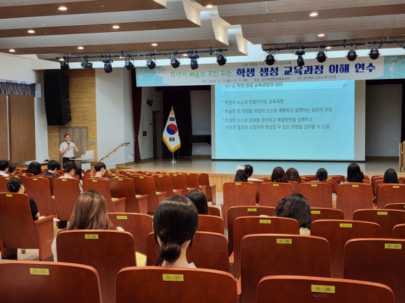 | 경상북도김천교육지원청(교육장 공현주)은 6월 10일, 11일 이틀 동안 김천학생문화예술센터에서 관내 초등학교 교사 62명을 대상으로 학생이 배움의 주인이 되는 「2024 학생 생성 교육과정 이해 연수」를 실시했다.