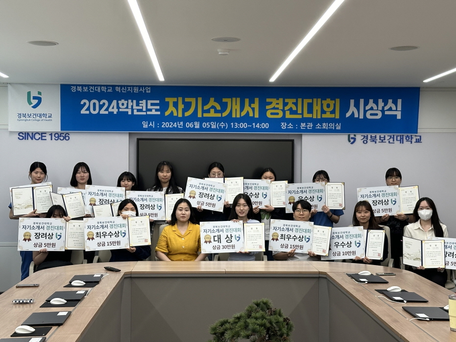 | 경북보건대(총장 이은직) 취창업지원센터에서는 지난 6월 5일 2024학년도 자기소개서 경진대회 시상실을 개최했다고 14일 밝혔다.