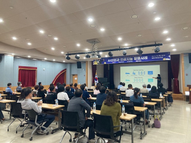 | 김천시평생교육원에서는 지난 6월 13일 김천시민대학 수강생 80여 명이 참석한 가운데 양종석 연구원의 ‘AI 산업과 인공지능 활용사례’라는 주제로 강연이 펼쳐졌다.