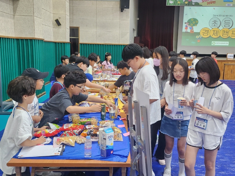 본교 교사 정선아 외 9명이 강사로 참여한 이번 캠프는 학년별 맞춤 주제로 진행되었다. 4학년 학생들은 ‘교실 속 과자거리 운영하기’를 통해 과자 가게를 운영하며 경제활동의 기초를 다졌고, 5~6학년 학생들은 ‘나만의 아이디어로 창업계획서 쓰기’를 통해 창업에 필요한 다양한 요소를 학습하였다. 특히, 4학년 학생들은 선배들의 창업계획 발표를 듣고 투자자로 참여하면서 자금 운용과 투자 결정의 중요성을 배우는 등 투자 교육도 이루어졌다. 이를 통해 학생들은 문제 해결 능력과 비판적 사고력을 기를 수 있었다.