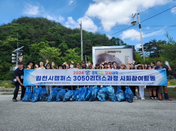 | 김천대학교(윤옥현 총장)는 경북도민행복대학 김천시캠퍼스 3050리더스 과정 4기 사회참여활동을 국립김천치유의 숲과 증산 솜씨 마을 일대에서 진행했다고 6월 20일 밝혔다. 사회참여활동에는 이영목 회장(경북도민행복대학 김천시캠퍼스 3050리더스 과정)을 비롯한 교육생 30여 명과 김천대학교 평생교육원 홍상민 부원장이 참여해 김천의 주요 관광지주변 환경정화를 하였다.