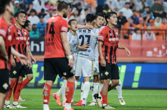 □ 전반에만 다섯 골, 거침없는 양 팀의 골 잔치 김천상무는 전반 시작과 함께 일격을 맞았다. 전반 2분, 전열을 채 가다듬기도 전에 강원의 크로스 플레이에 이른 실점을 허용했다. 실점 직후 유강현이 슈팅으로 반격에 나섰지만, 골대에서 살짝 벗어나며 아쉬움을 남겼다.