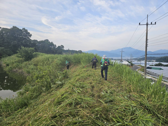 관내 저수지 15개소 제방 제초 작업 및 지장목 제거 작업 시행