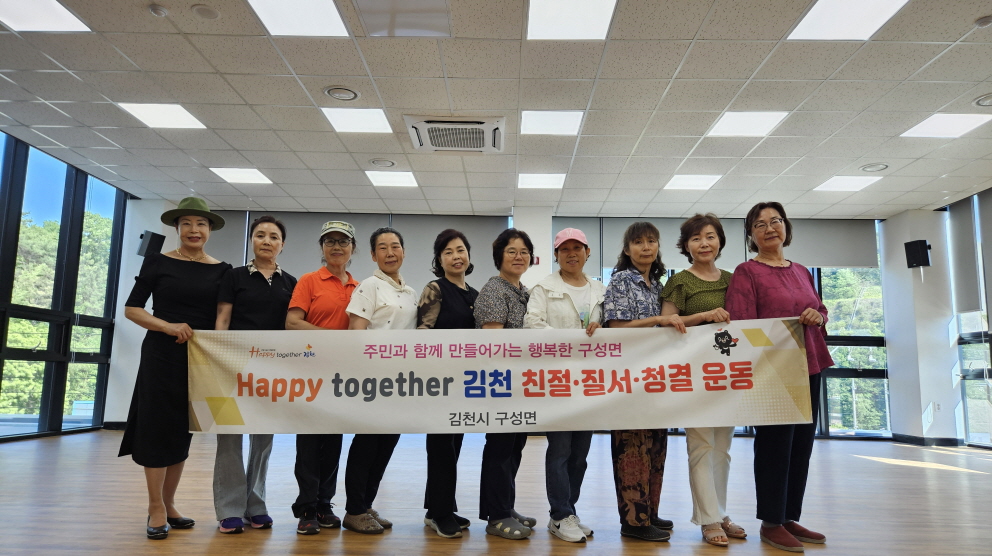 | 구성면(면장 이혜정)에서는 지난 6월 20일, 시니어 모델 강좌(대표 변갑순)를 대상으로 「Happy Together 김천 운동」을 홍보했다. 시니어 모델 강좌는 바른 걷기 자세 등의 모델 워킹 강좌로 매주 목요일 구성면 행정복지센터 3층 다목적실에서 활동을 가진다.